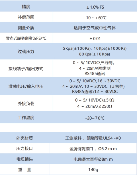 壓力傳感器可提供低至0~±50Pa,高至0~±10,000Pa的量程。靜態(tài)精度在常溫下為±1.0%FS,溫度補(bǔ)償范圍是-10~+60℃,在溫度補(bǔ)償范圍外的熱漂移小于0.05%FS/℃。LFM108采用進(jìn)口壓力芯體,具有壓力反應(yīng)靈敏、長期輸出穩(wěn)定、溫度性能優(yōu)越等特點(diǎn)。