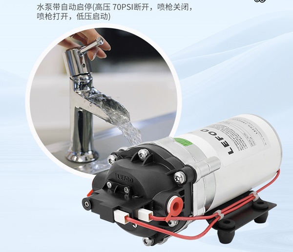 自動(dòng)啟停功能:當(dāng)噴槍關(guān)閉時(shí),泵自動(dòng)停止運(yùn)行(高壓70PSI斷開);噴槍開啟時(shí),低壓啟動(dòng),避免頻繁啟停,延長使用壽命。