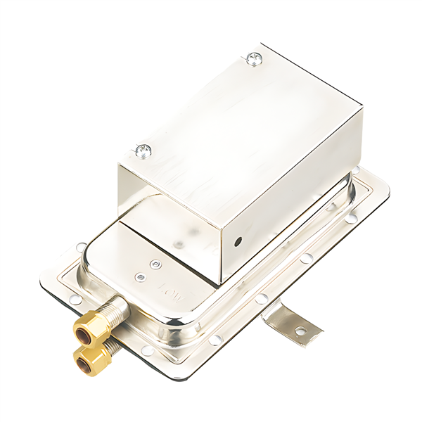 金屬外殼內(nèi)有隔膜、校準彈簧、微動開關(guān)等。接口位于隔膜的兩邊,連接管采用6.35mm鋼管或硬管,用螺母連接。外防護罩避免意外接觸到開關(guān)觸點螺絲和調(diào)整螺絲。