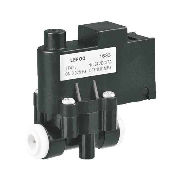 LF42凈水機高低壓壓力開關(guān)用于凈水器供水壓力保護(hù),有高壓力(LF42H)和低壓力(LF42L)兩個型號。LF42-H是高壓力保護(hù)開關(guān),當(dāng)壓力儲水桶水滿時,壓力桶傳遞到高壓開關(guān)的壓力達(dá)到高壓開關(guān)設(shè)定的壓力值時,高壓開關(guān)會起跳斷開電路,讓泵停止工作,以免損壞泵。