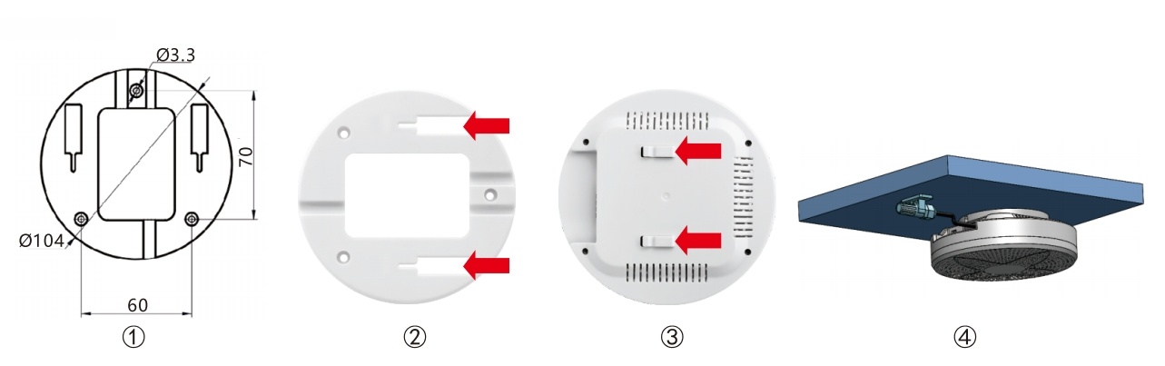 3.固定好安裝卡座后,將設(shè)備卡扣卡入安裝底座,如圖2、3,聽到卡入聲后即是安裝到位;