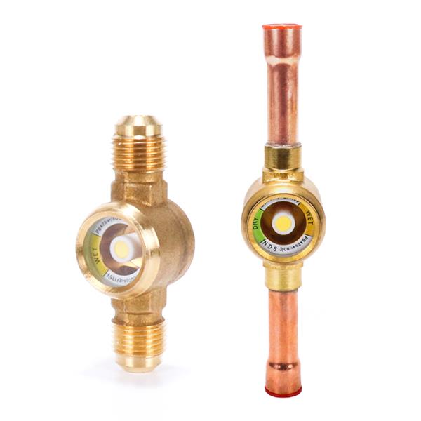 LFSG視液鏡用于制冷、空調(diào)裝置的液體管路上,用來指示制冷劑的流動狀況、制冷劑中的含水量及油分離器回油管路中潤滑油的流動狀況。視液鏡帶有一潮濕指示器,通過改變顏色來指示制冷劑中的含水量。視液鏡用于貯液器中制冷劑的液位或壓縮機(jī)曲軸箱中潤滑油的液位。視液鏡均使用改性PTFE密封材料,適用于多種制冷劑及冷凍油。采用防爆壓接的結(jié)構(gòu),觀察窗清晰而安全。