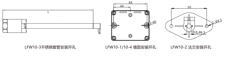 1、例LFW10-2A412代表風(fēng)管型,溫度輸出4~20mA,溫度量程0~50℃,探桿長度200MM