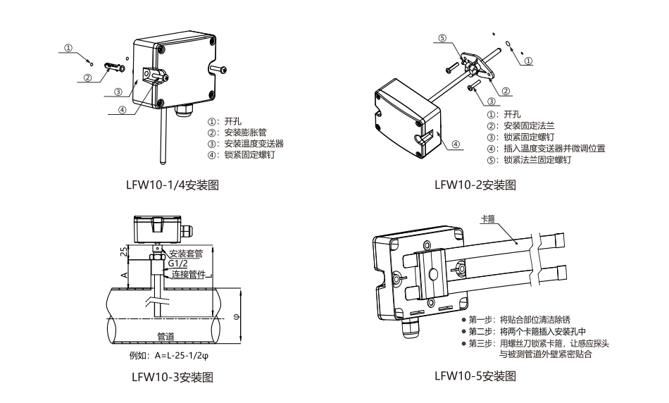3、LFW105卡箍型的精度與管壁材質(zhì)、安裝、環(huán)境溫度、風(fēng)速等相關(guān),難以達(dá)到上述精度。