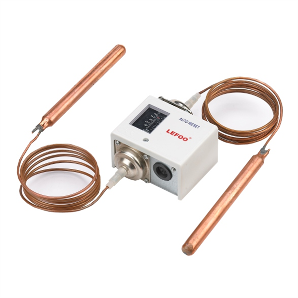 TSD型溫差控制器是根據(jù)兩個感溫包感受溫度差值與設(shè)定值比較,給出一個差值信號使溫度控制器動作。在通風(fēng)設(shè)備和制冷裝置中,需要保持兩股介質(zhì)之間的溫差為某一個恒定值時,可采用溫差控制器來實現(xiàn)。兩個相對的感溫包,一個用來作為溫度參考,另一個則用作控制發(fā)信號,而溫差則是直接的受控參數(shù)。